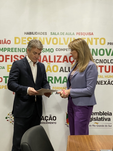 A vice-presidente do Consórcio das Universidades Comunitárias Gaúchas e reitora da Universidade de Passo Fundo, Bernadete Dalmolin, visitou nesta quarta-feira (15) o presidente da Assembleia Legislativa, Vilmar Zanchin. No encontro, foi entregue um documento com as pautas prioritárias para o setor com foco no desenvolvimento da educação no Rio Grande do Sul. Também foram abordados alguns desafios a serem enfrentados, como a dificuldade de acesso ao ensino superior, a disponibilidade de vagas na rede do Comung e a crise das licenciaturas.